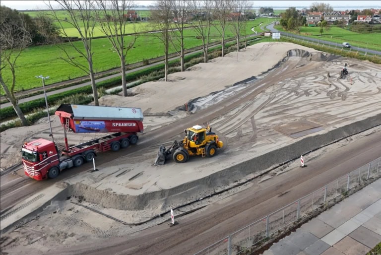 De ligging en de zachte ondergrond maken de voorbereiding van dit project bijzonder. Om de bodem sneller en gecontroleerd te laten inklinken, wordt gebruikgemaakt van de Beaudrain-techniek, uitgevoerd door Cofra. Deze methode zorgt ervoor dat het water in de ondergrond gecontroleerd wordt weggepompt. Hierdoor wordt de bodem stabieler, zonder dat er grote hoeveelheden extra zand nodig zijn. Dit betekent minder transportbewegingen, minder uitstoot en minder risico voor de omgeving. De vergelijking die hierbij wordt gemaakt: net zoals een vacuümverpakt pak koffie stevig wordt wanneer de lucht eruit is, wordt ook de ondergrond sterker wanneer de waterdruk wordt weggenomen.