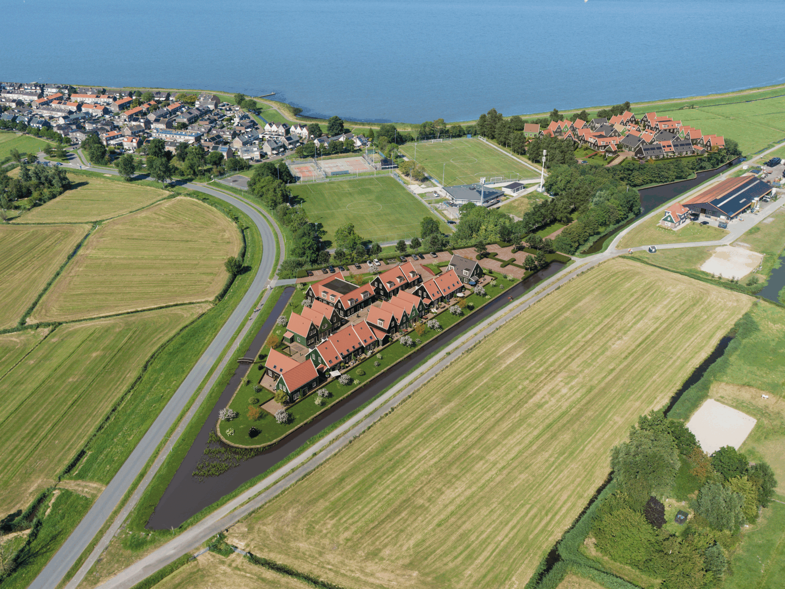 De Osselandwerf, met 29 woningen, komt op de huidige parkeerplaats van het sportcomplex en ligt dicht bij het centrum. Deze Osselandwerf heeft de vorm van een driehoek, waarbij de westelijke en zuidelijke zijde grenzen aan het open landschap. Op de 2 oostelijke (voormalige) sportvelden, langs de dijk, komt de Zinkerwerf met 70 woningen. Deze werf biedt aan de noordzijde oneindig zicht over het Markermeer en aan de oostzijde uitzicht op de vuurtoren, Het Paard van Marken. Aan de zuidzijde wordt deze werf begrensd door een dichte, beboste zone. Water, groen, dynamiek, rust, verbinding of stilte.