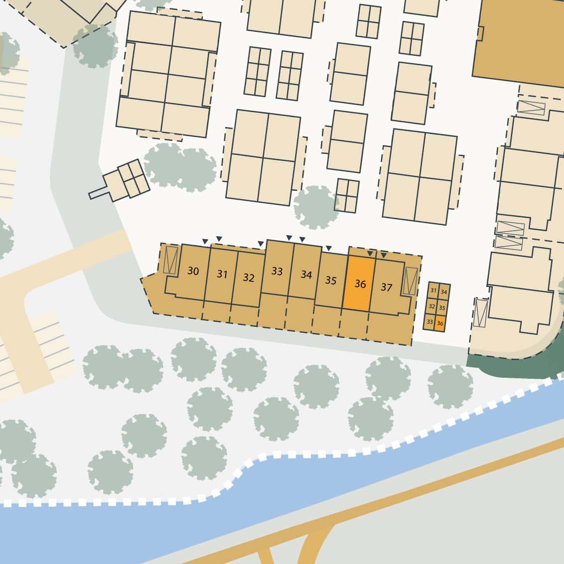 Navigeer met de muis over de woningen en klik voor uitgebreide woninginformatie.